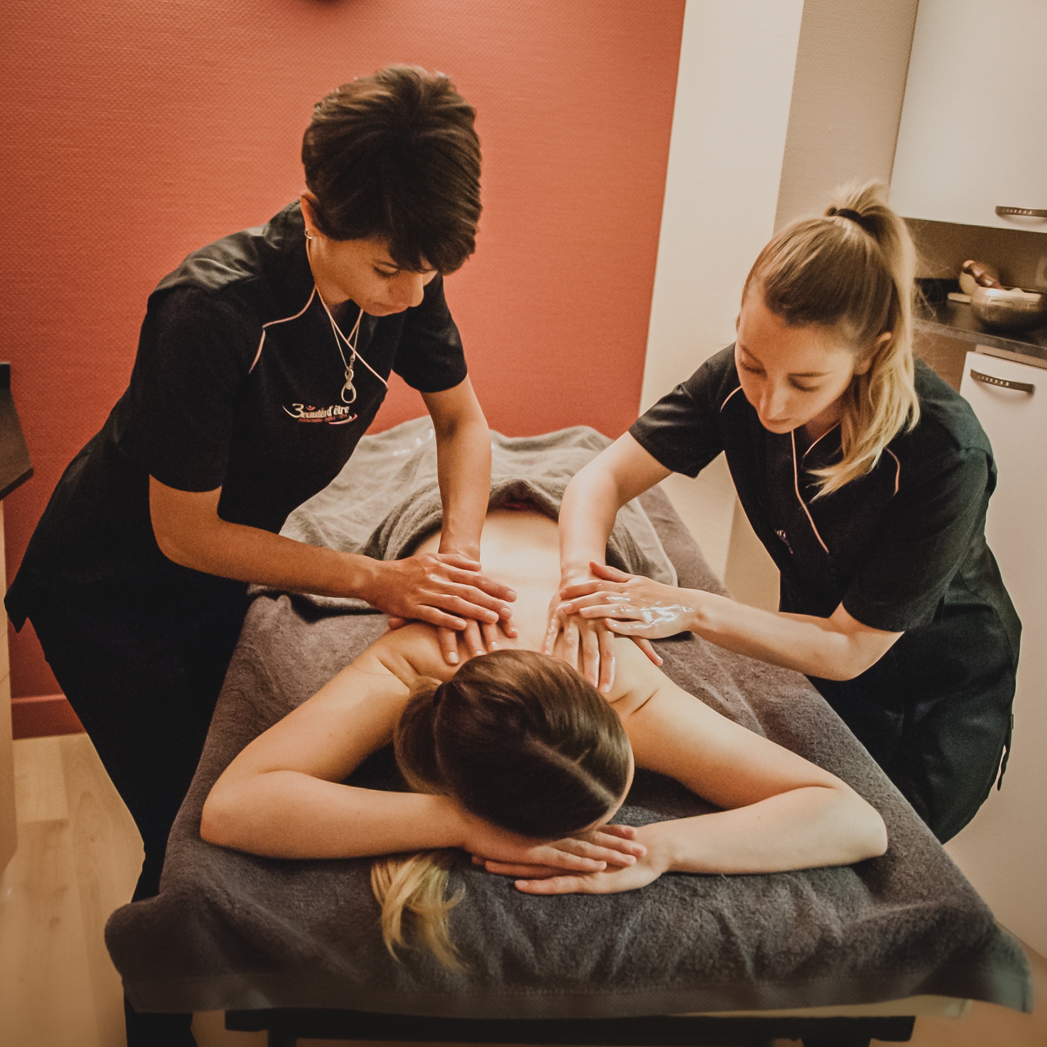 Un soin hors du temps. Le massage à 4 mains est bien plus qu’un massage classique : il déconnecte le mental plus rapidement, car l’esprit ne peut suivre les mouvements doubles. Le corps, quant à lui, reçoit deux fois plus de bienfaits :